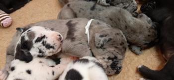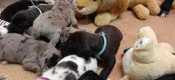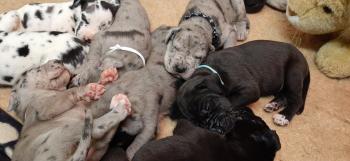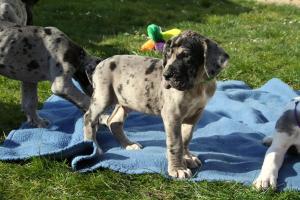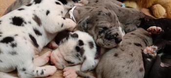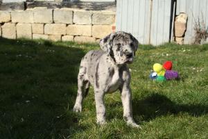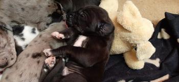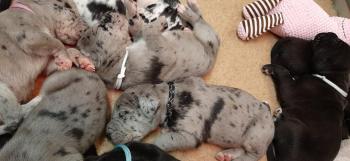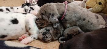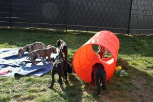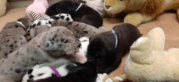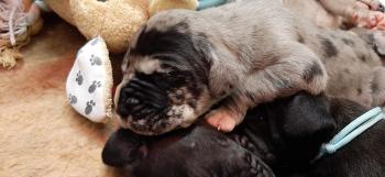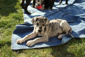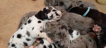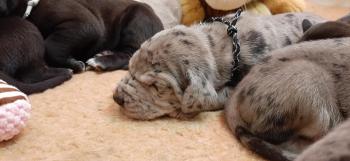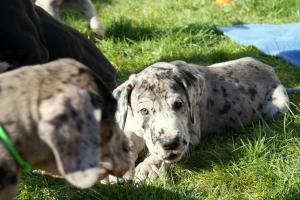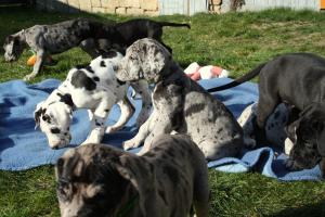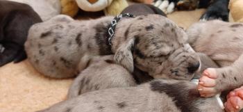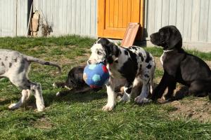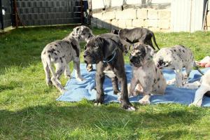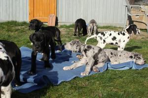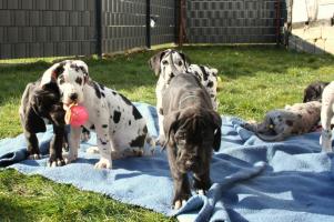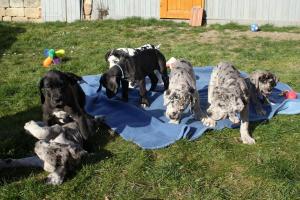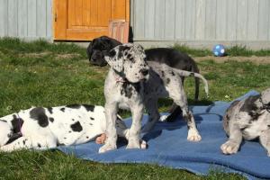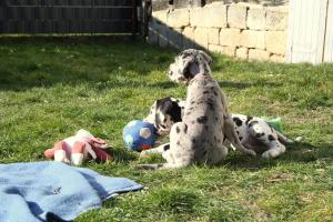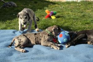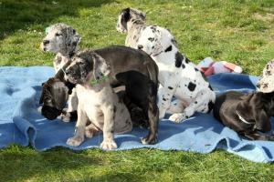grau-schwarz gefleckt: 3 Rüden und 1 Hündin