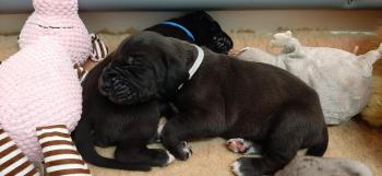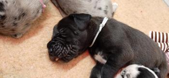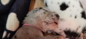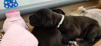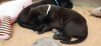 Die Welpen sind schon 2 Wochen alt und entwickeln sich prächtig. Motte ist eine super Mami und kümmert sich liebevoll um ihre Babys.