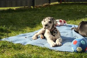 Wie schnell die Zeit vergeht. 7 1/2 Wochen sind die Rabauken nun schon. Ein Glück wird das Wetter besser, da können sie ausgelassen im Garten spielen.